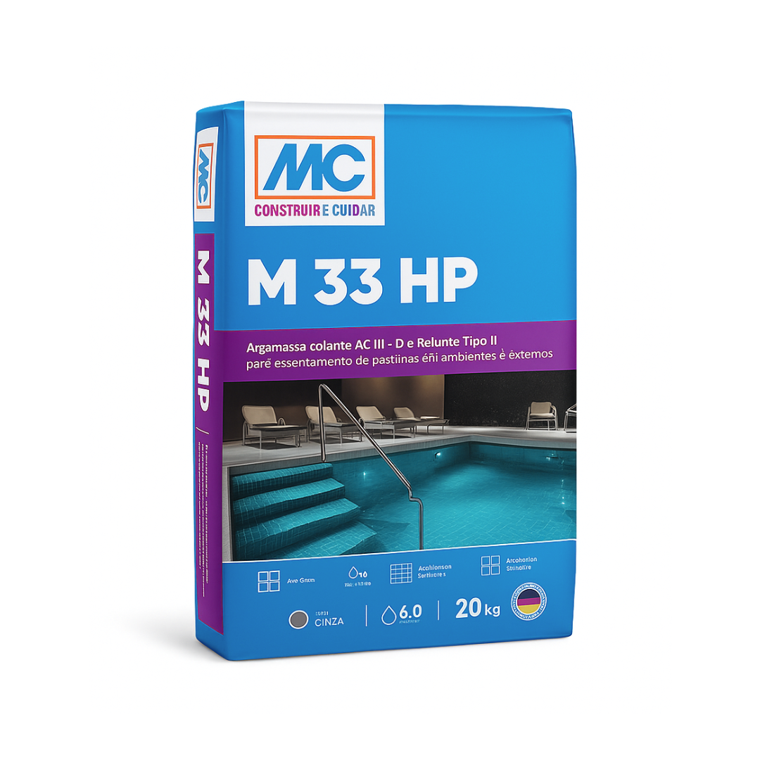 2. Adicione um saco de M 33 HP e misture com um misturador mecânico de baixa rotação por 3 minutos ou até obter uma massa pastosa e homogênea.