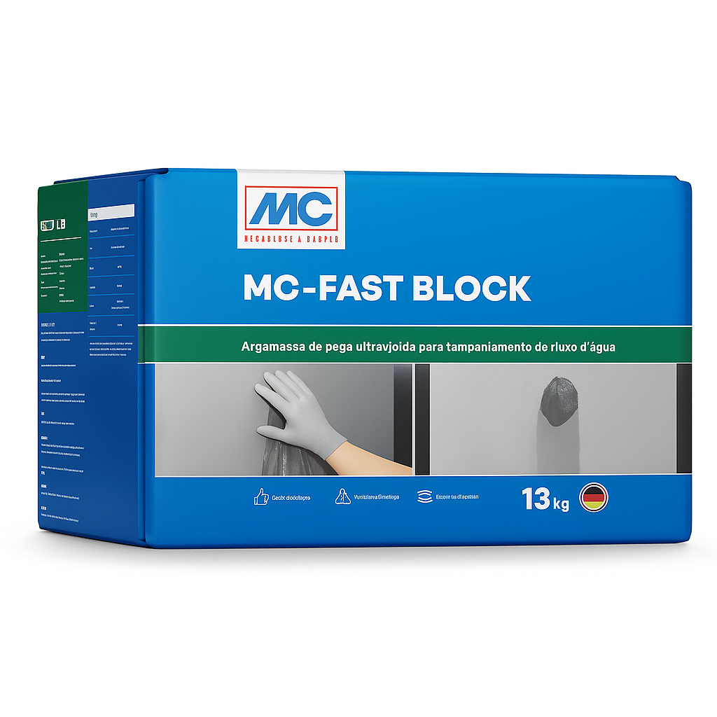 É possível, em alguns casos, fazer a aplicação do MC-Fast Block sem a adição de água, apenas esfregando uma quantidade do produto sobre a infiltração. Esta situação pode acontecer, principalmente, em situações nas quais o vazamento é proveniente de uma laje de fundo. Neste caso o MC-Fast Block reage com a água do próprio vazamento. Em dias mais frios a argamassa tende a demorar um pouco mais para atingir o completo endurecimento. Em dias mais quentes este tempo pode ser menor.