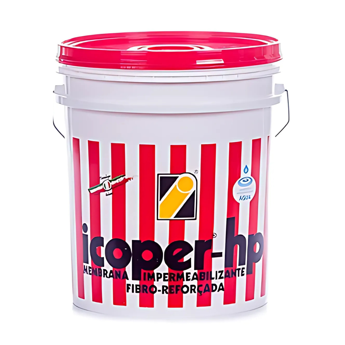 Membrana Líquida Icoper HP - com fibras - Cinza (Balde 20 kg) - ICOBIT é indicada para: Lajes, terraços, varandas, telhados e coberturas em geral (concreto, metálicos, fibrocimento, barro, asfálticos)