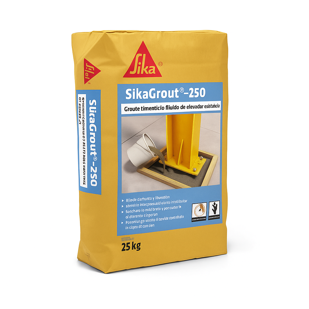 SikaGrout®-250 é um graute pré-dosado composto de cimento Portland, areia de quartzo de granulometria selecionada e aditivos especiais convenientemente dosados. É fornecido pronto para o uso, bastando a adição de água na proporção recomendada para se obter a consistência e resistência mecânica indicada.
