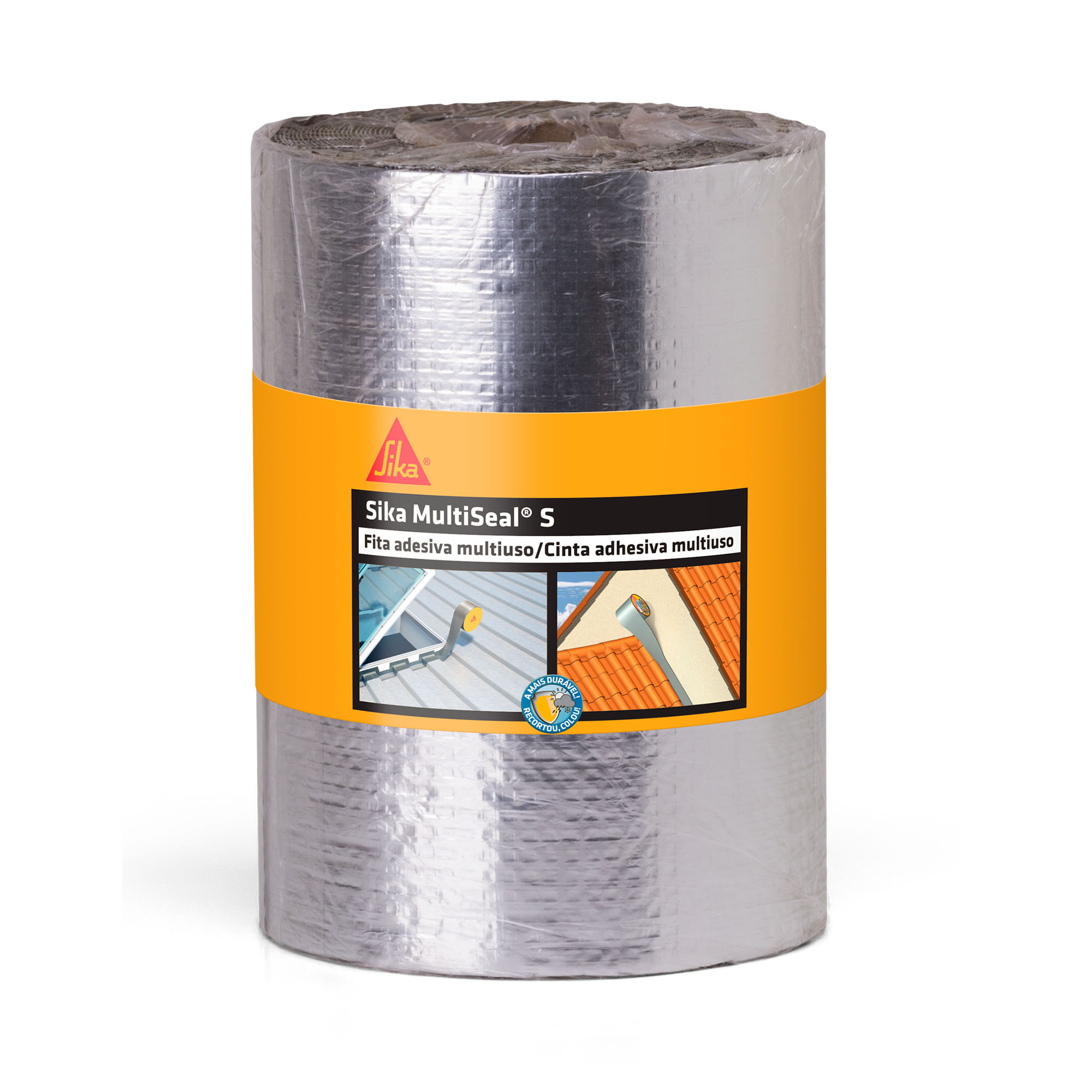 composta de uma camada de adesivo asfáltico, coberto com uma lâmina de alumínio e protegido por um filme plástico Sika MultiSeal® S é utilizado para vedar e reparar: - Telhas metálicas, de fibrocimento e de concreto; - Junção de parede com telhado ou lajes; - Reparo de trincas em concreto e alvenaria; - Cumieiras, calhas, dutos e rufos; - Passagens de tubulações em lajes e telhados; - Baús de caminhões e containers; - Caixas de ar-condicionado e exaustores eólicos; - União entre materiais de diferentes naturezas. - Aplicação rápida e fácil.