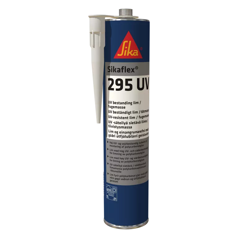 Sikaflex®-295 UV é um adesivo de poliuretano monocomponente de consistência pastosa que cura pela exposição à umidade atmosférica. É indicado para as aplicações de vedação internas e externas e para colagem de vidros orgânicos no mercado náutico. Sikaflex®-295 UV atende aos requisitos estabelecidos pela Organização Marítima Internacional (IMO).