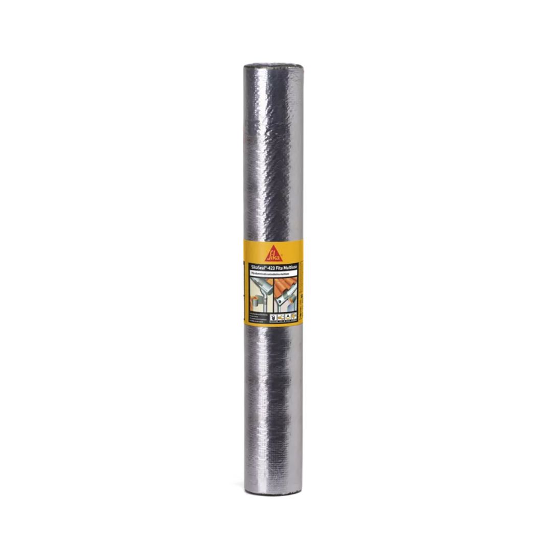 SikaSeal®-423 Fita Multiuso é uma fita multiuso composta por cimento asfáltico enriquecido com polímeros e elastômeros. É aluminizada em uma das faces e autoaderente na outra.