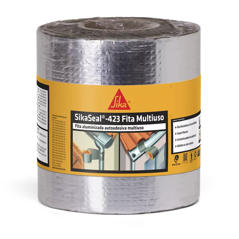 SikaSeal®-423 Fita Multiuso é uma fita multiuso composta por cimento asfáltico enriquecido com polímeros e elastômeros. É aluminizada em uma das faces e autoaderente na outra.